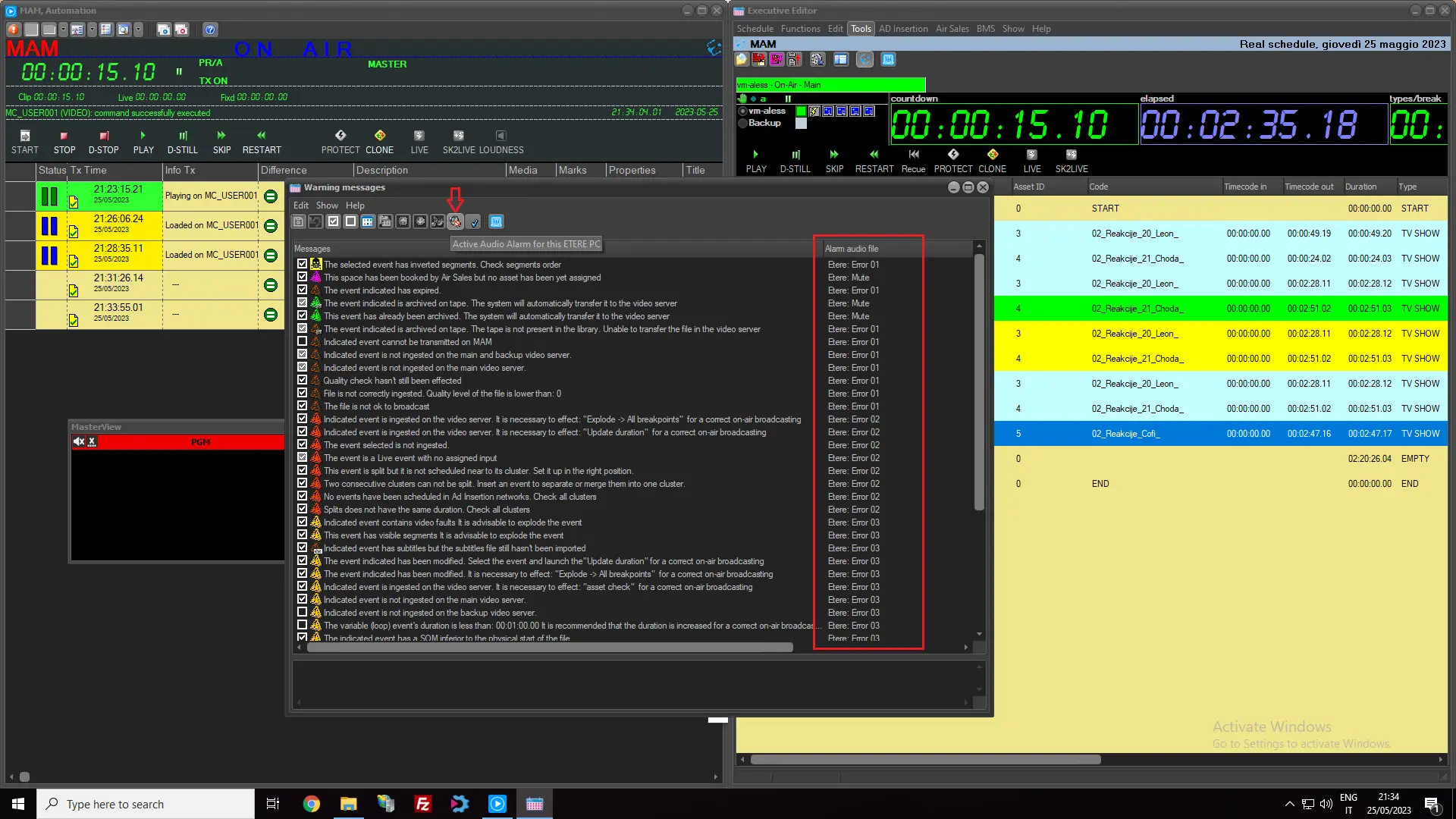Executive editor allow to reproduce alarms when a warning appears in the schedule.