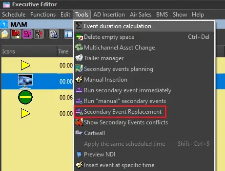 From Executive Editor, is possible to lunch Secondary Event Replacement tool:
