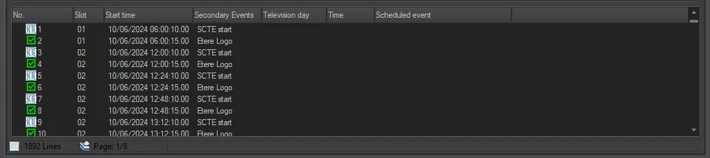 Each scheduled appearance will be represented by a row. All rows will be displayed across multiple pages and it's possible to navigate among them with the arrow buttons in the toolbar.