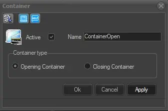 The Container secondary event allows to define the point on which the transmission of a certain block of events starts (opening container) and subsequently ends (closing container), when inserting a container it is enough to define the following fields: