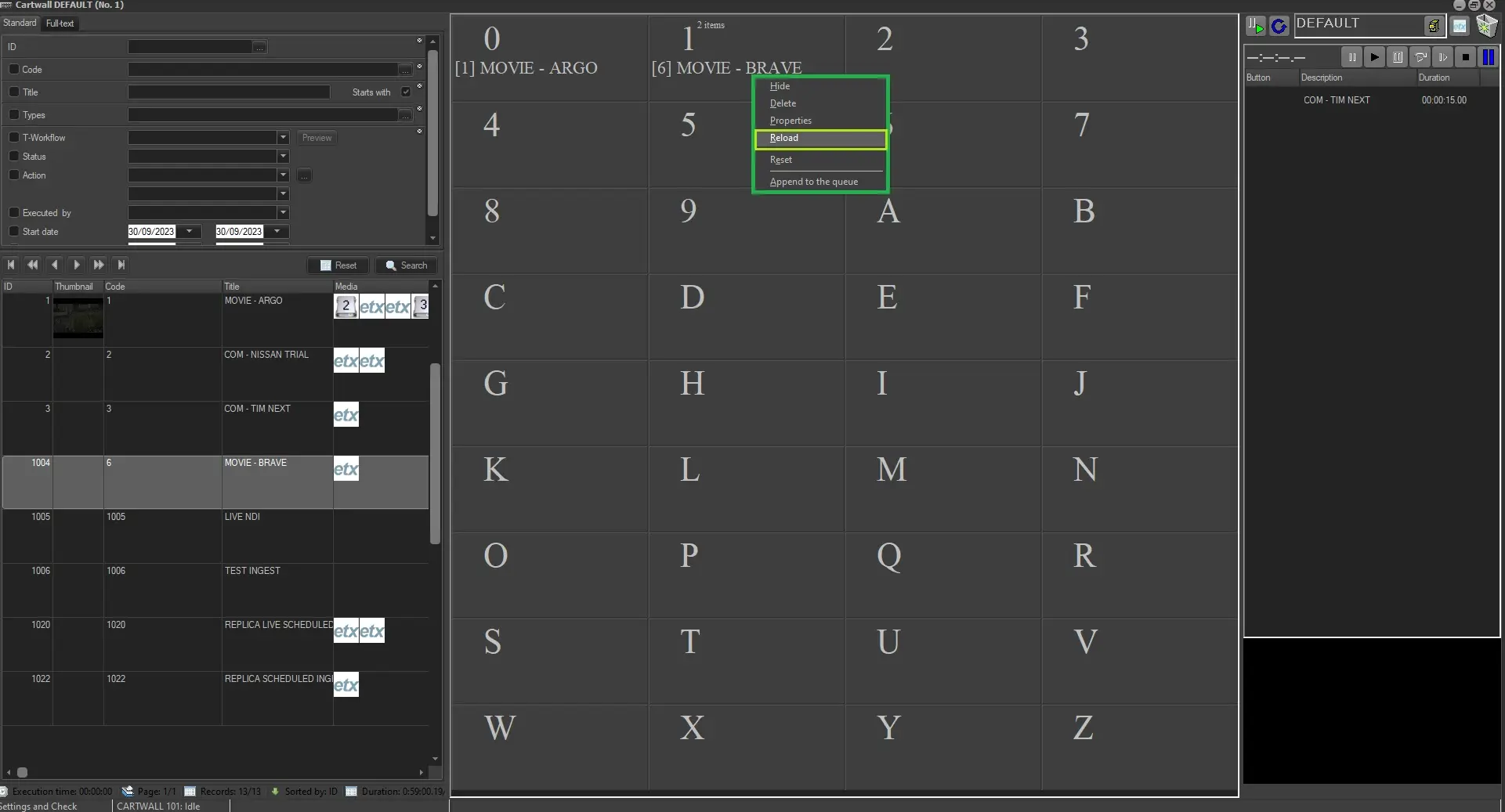 . Append to the Queue: the given function will append the Virtual Asset and all its segments into the Etere Cartwall Playlist;