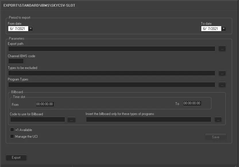 oSpecify the time slot (from date – to date) to export the billboard events