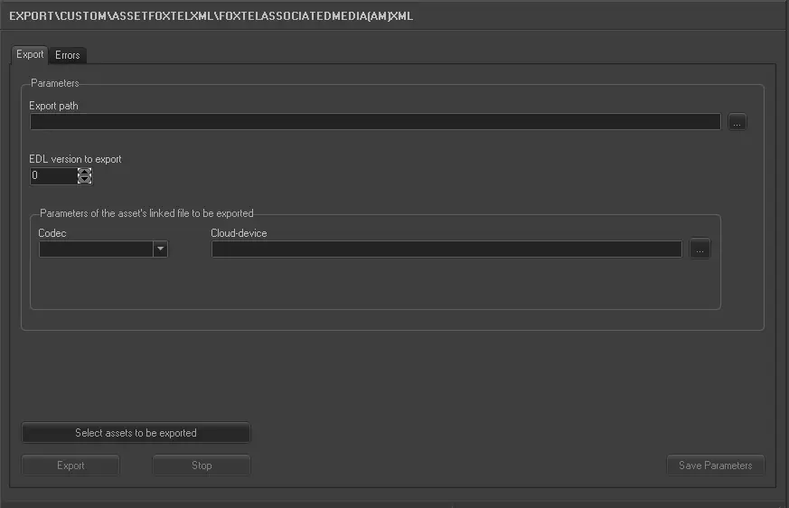 Parameter of the asset’s linked file to be exported - •Codec: Select a codec used by the asset.