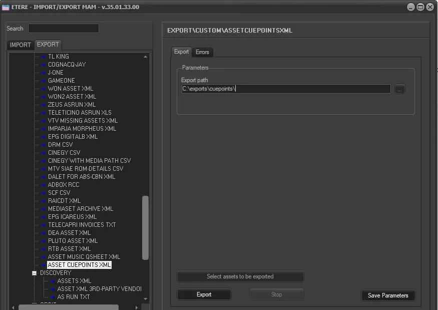 EXPORT_ASSET_CUEPOINTS_XML