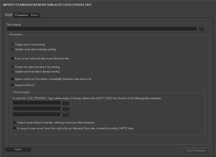 Search assets linked to the files, referring yo previous flexy-metadata - If enabled, the import would make reference to previous flexy-metadata when searching assets to linked to the files.