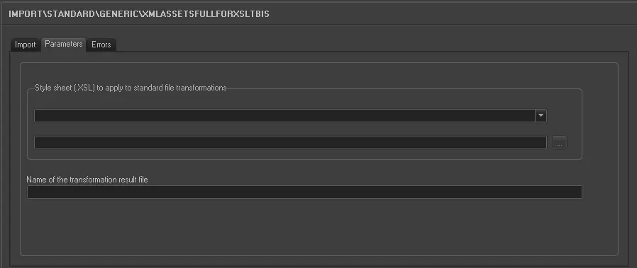 Stylesheet (.XSL) to apply to standard file transformations - If specified, imported XML data will be converted from the standard format into a custom format, based on the given XSL style sheet (e.g. ET_XML_ASSETS_FULL_XSLT).