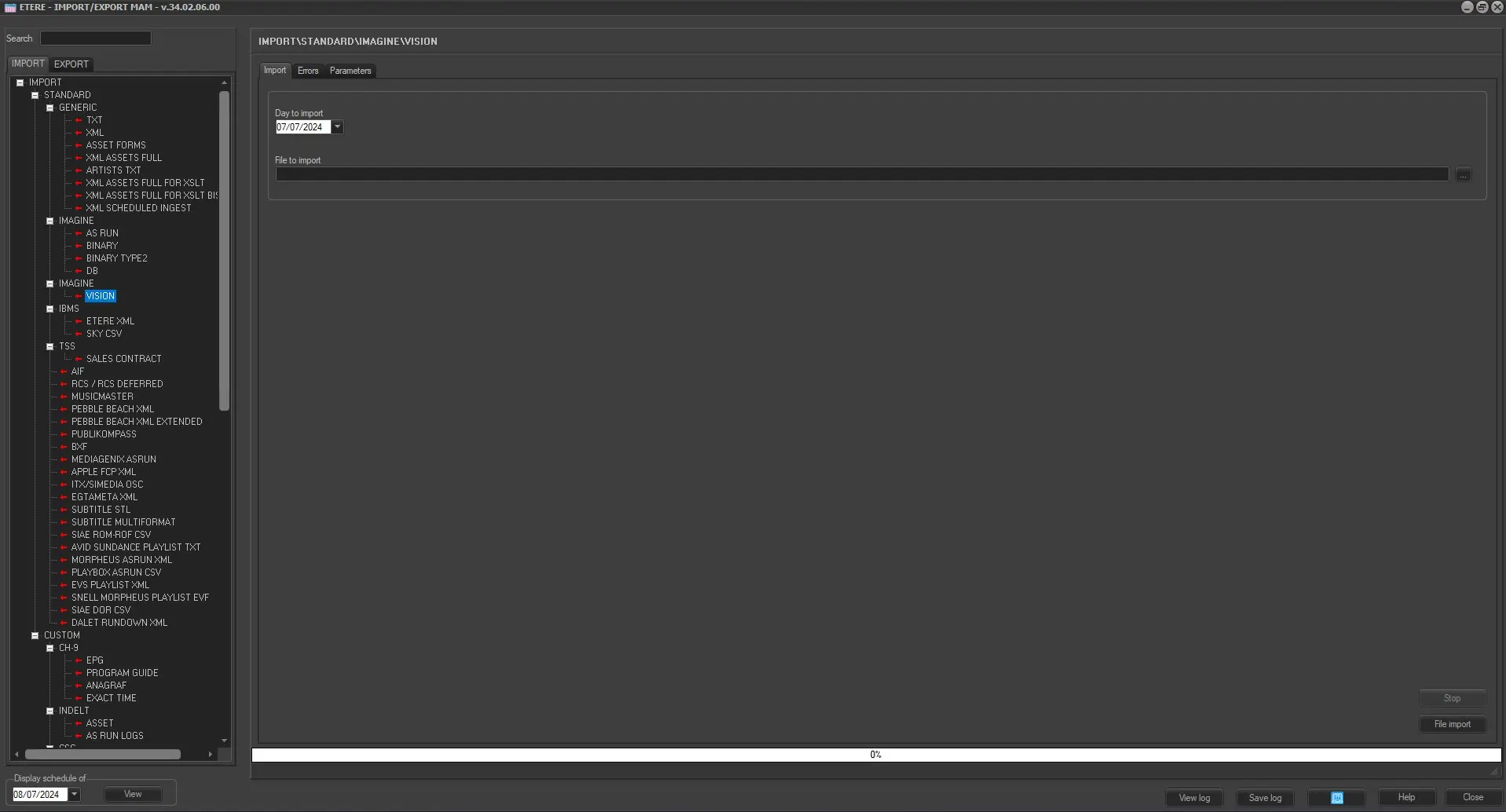 Imagine Vision Import allows you to import any schedules generated by the Imagine H-Class Vision scheduling program.