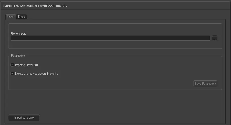 The import PLAYBOX ASRUN CSV import an AsRun log file containing one day schedule.