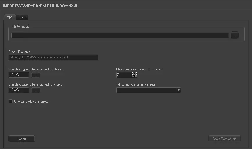 The Import Standard DALET RUNDOWN XML import an XML file containing playlists into Etere Studio Player.