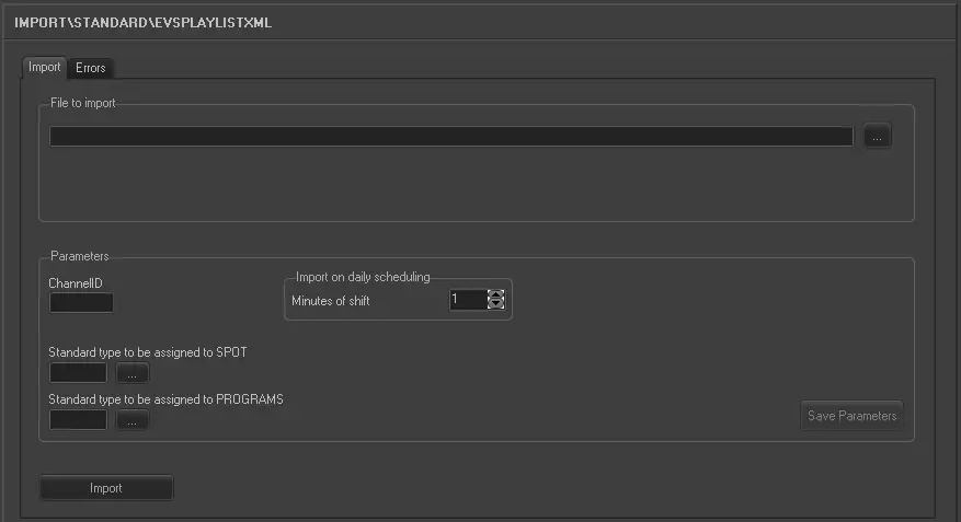 The import EVS Playlist XML import an XML file containing one day schedule.