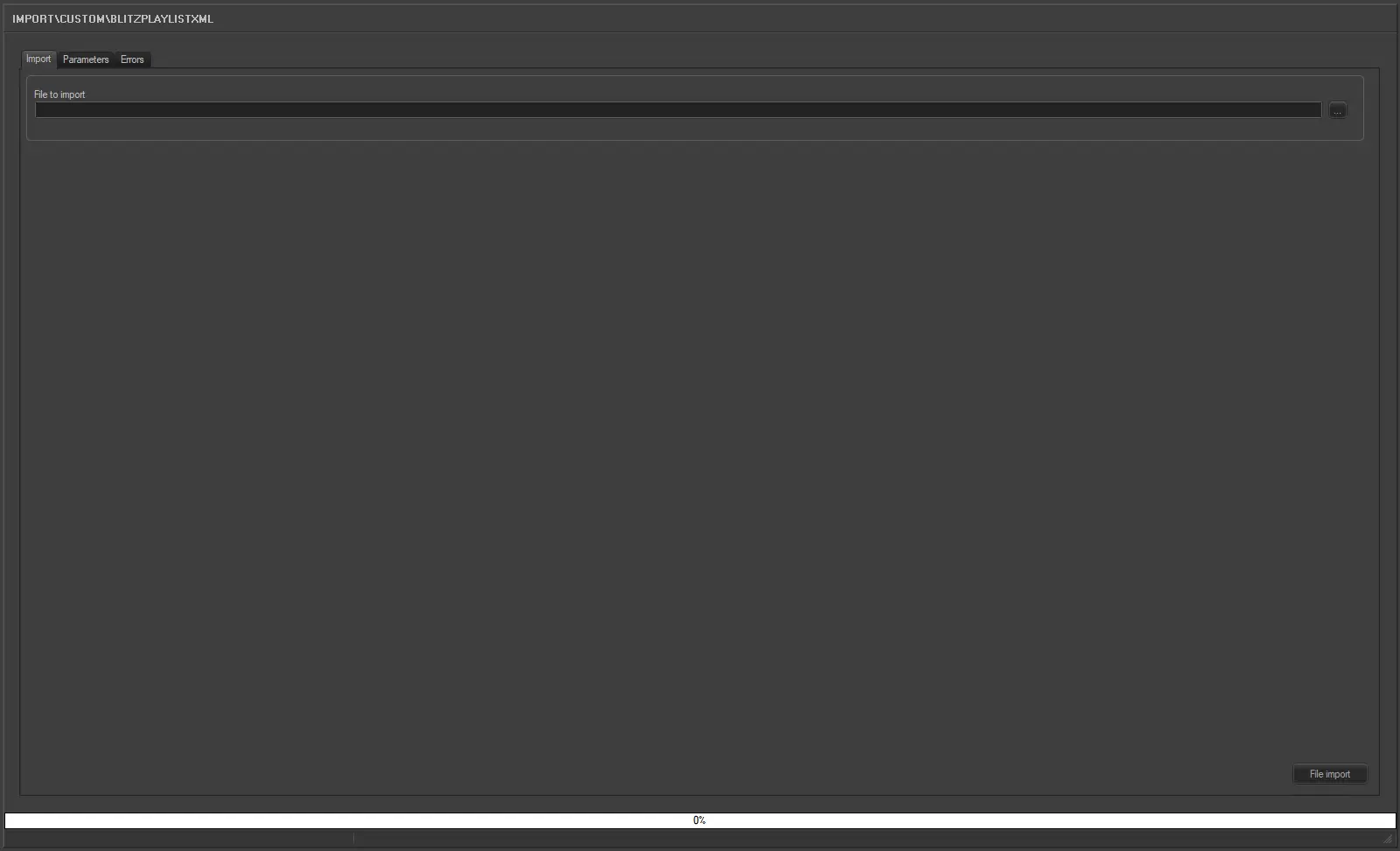 •File to import: Browse for the file from which data will be imported, only .XML files will be displayed since they are the only supported.