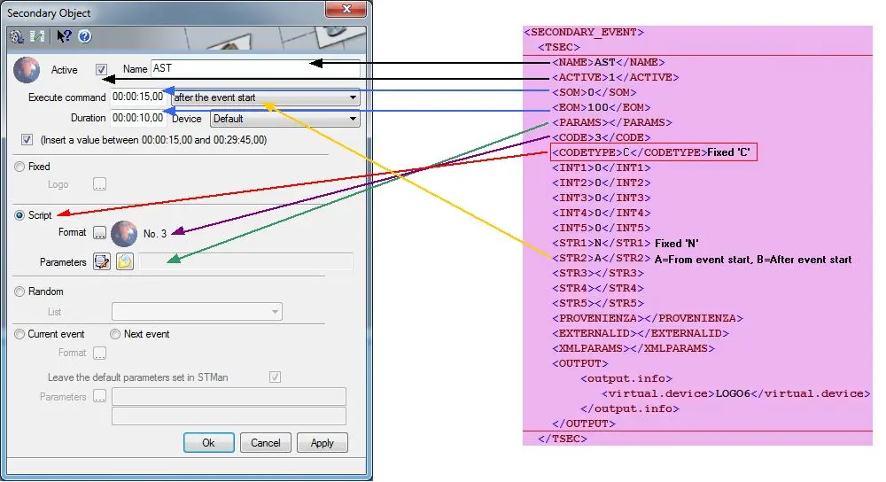 The figure below illustrates the relationship between Etere fields and XML data, managed during the export and import of secondary events (e.g. asynchronous titles):