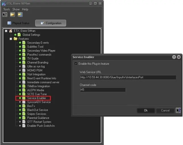 To enable the Plugin feature, launch the STMan module, access the “Configuration” section in the main interface and double click on “Enabler Service” to configure the enabler service.