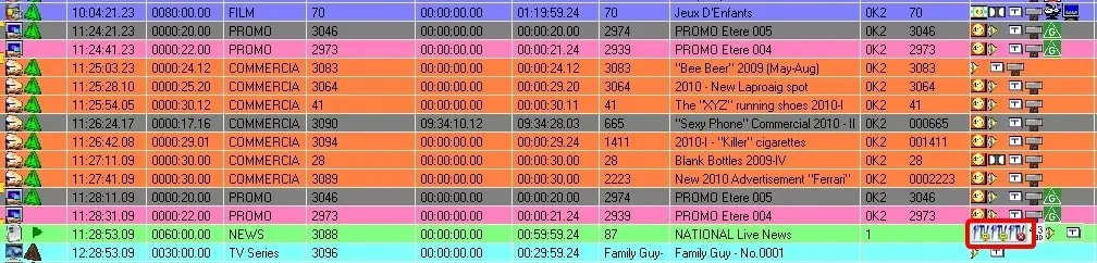 The As-run status can be consulted from the Executive Editor module, an icon will be overlapped to all supported secondary events indicating either its successful (smiling face) or failure (red cross) of their transmission: