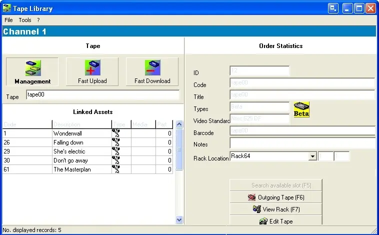 Fast Upload - automatically search for the first available rack position and assigns the tape to it.