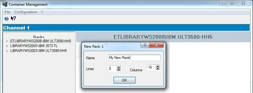 In order to manually create a new Rack (e.g. for managing offline tapes), it is enough to follow the next procedure:
