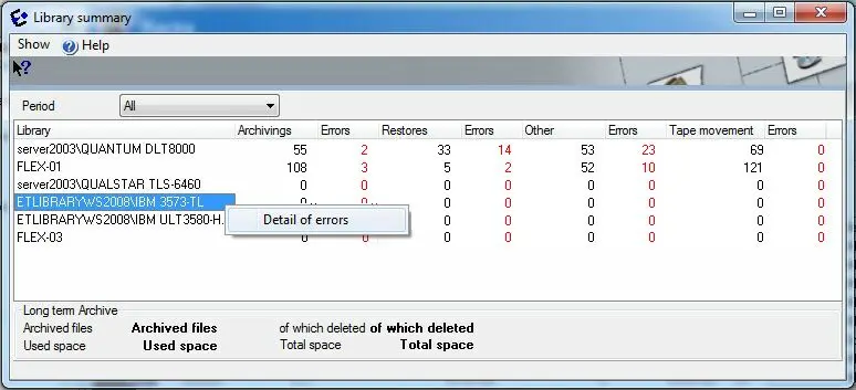 •Tape movements: Total number of "Tape Movement" operations performed on the selected library during the specified period.