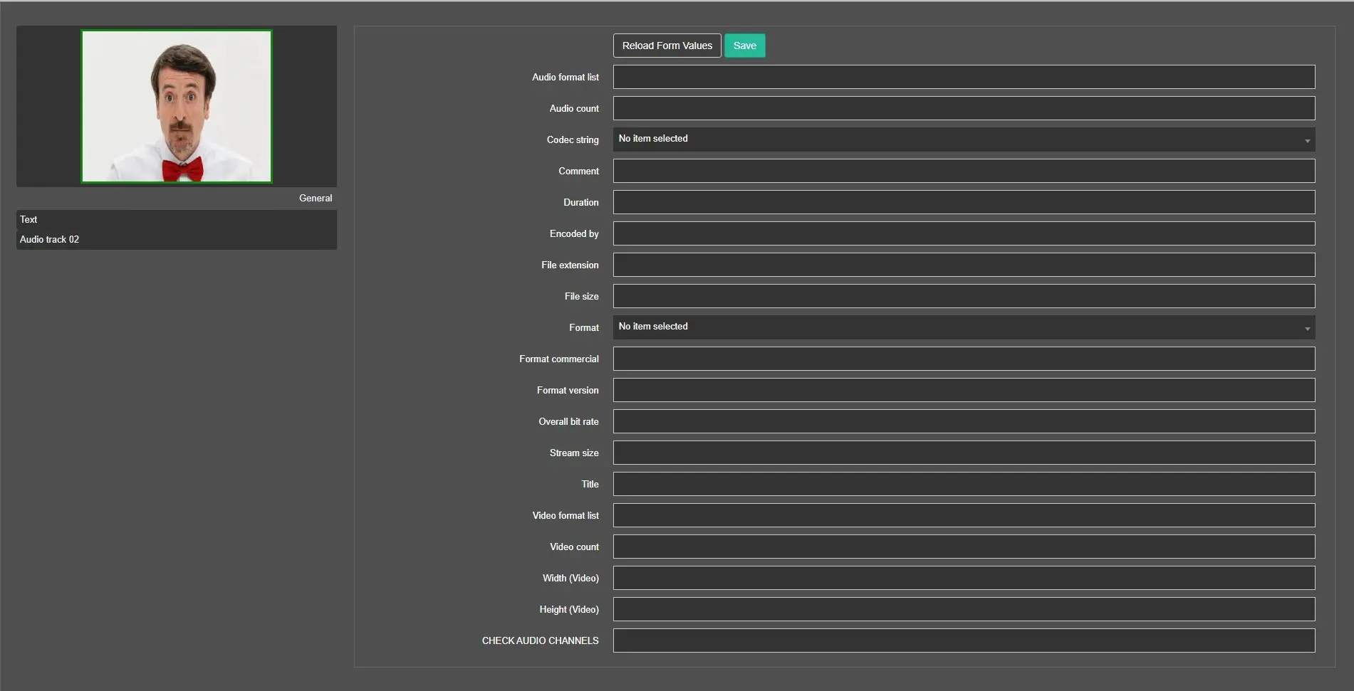 Some information displayed in the Media Data tab can be modified and confirmed by pressing the <Save> button.