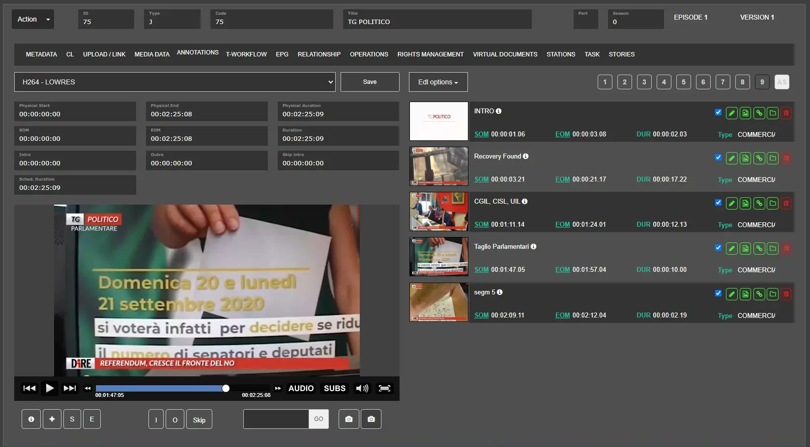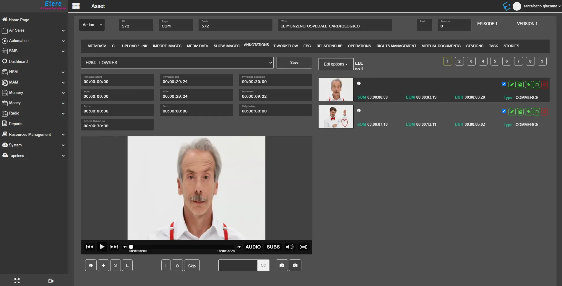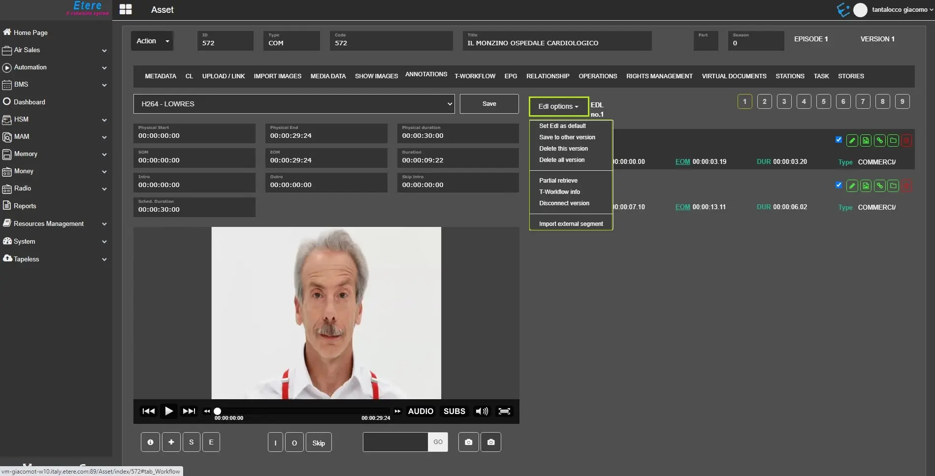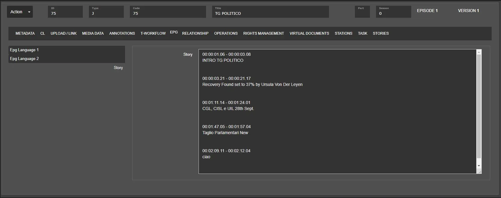 Since the Etere330332_BETA version another EDL level has been added called AS -> Advanced Story.