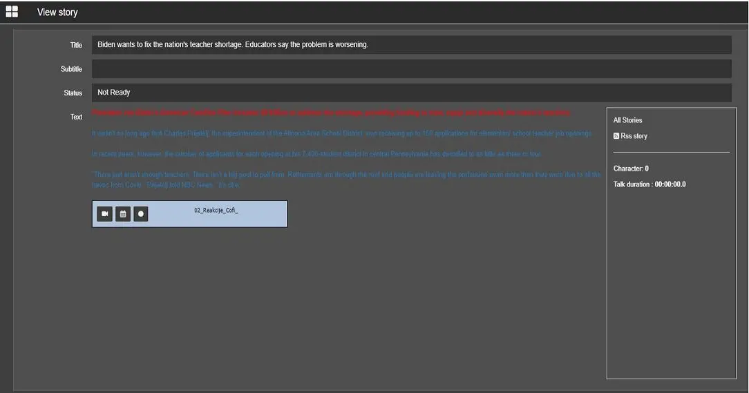 When you click on the story, another browser tab opens, showing the story's contents and other details information.