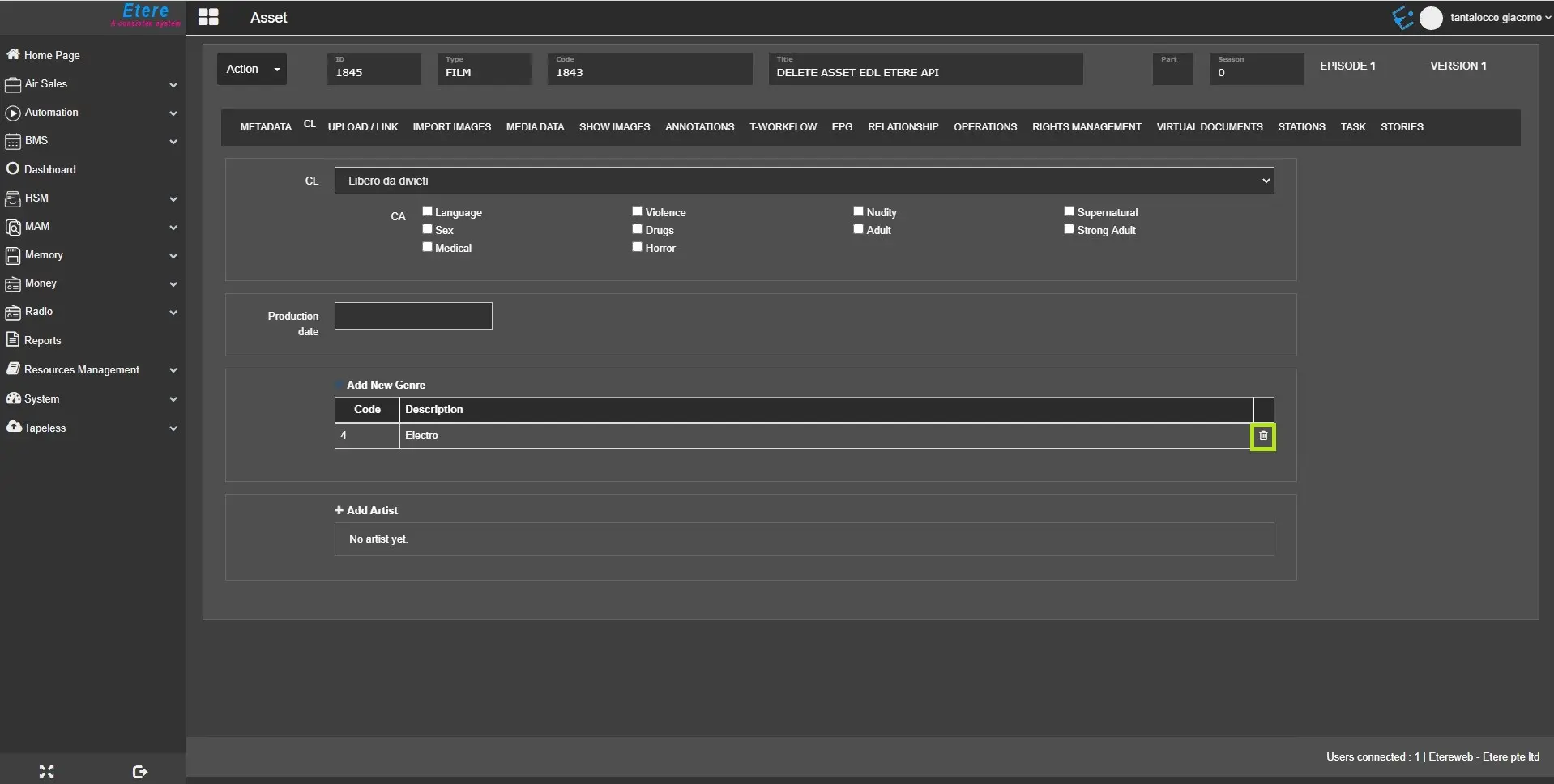 Moreover, you can modify the artist if the asset is a single asset form. If the asset is part of the season, it can be changed only through Season Manager.