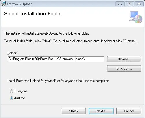 Accept the default settings and click <Next> to resume and complete the installation of Etere Upload Manager.