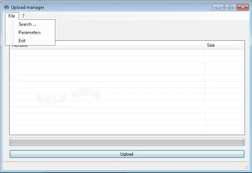 Select the Parameter function to determine the options to manage the Upload Manager.
