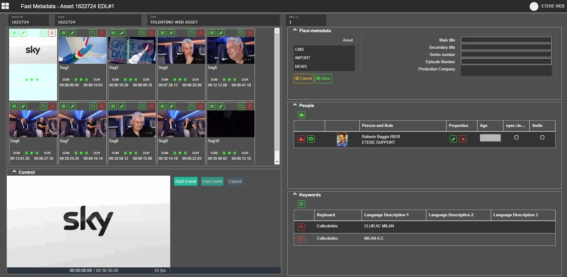 Select a segment to open the Fast Metadata Editing of its Asset’s EDL.