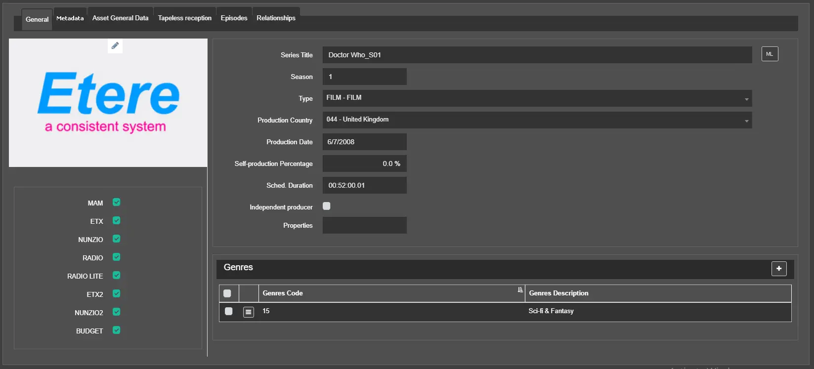 The Etere Season Manager module defines the television seasons to be used in the Etere system; you can display all information in the seasons, including season, episode number, schedule duration, assets linked to seasons, etc.