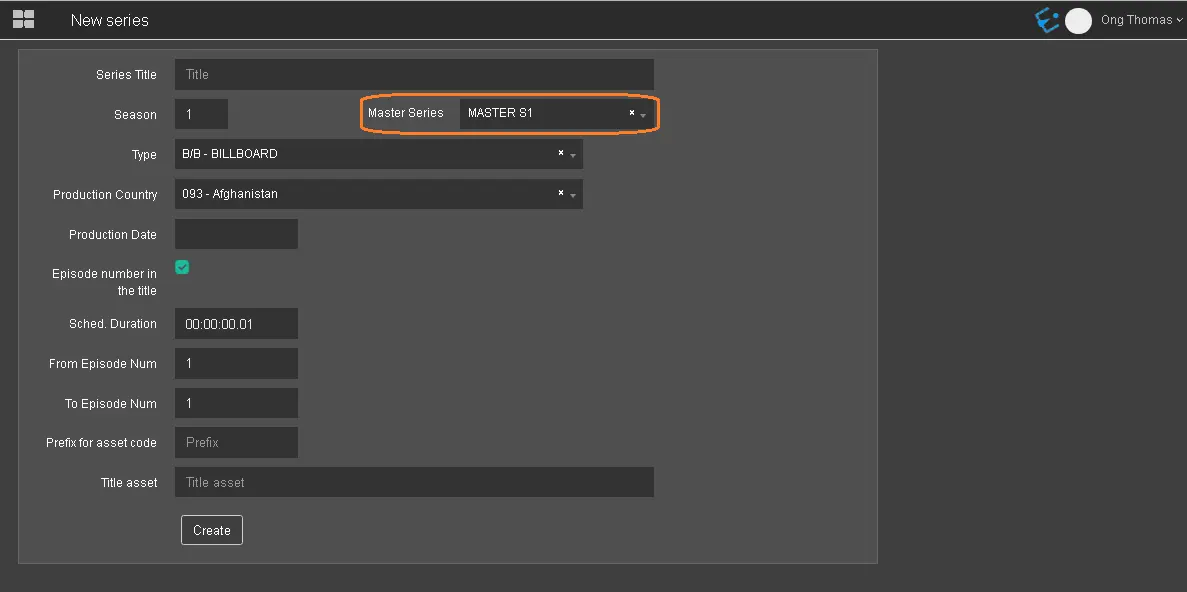The link between Season and the Series can be performed when creating a new Season or modifying an existing one.