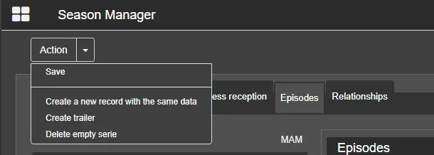 Delete empty serie: This option appears only if the season doesn't have any episode and allows to delete the season. Note: This options deletes also the linked trailer, if present.