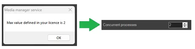 Concurrent processes: Indicate the maximum number of actions to be taken by the workstation at the same time. The maximum number is based on the license and cannot be exceeded.