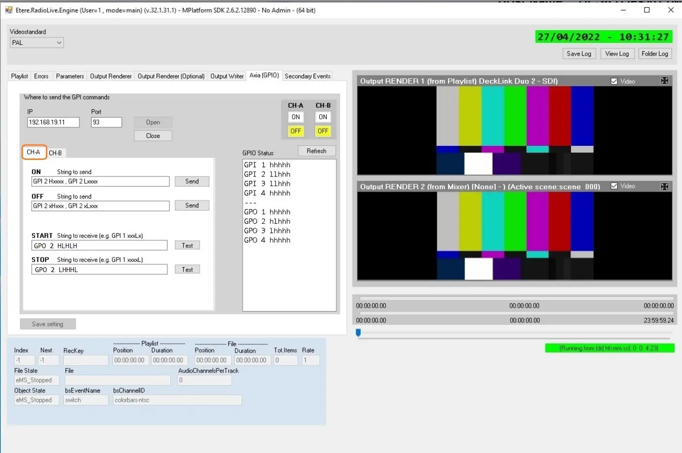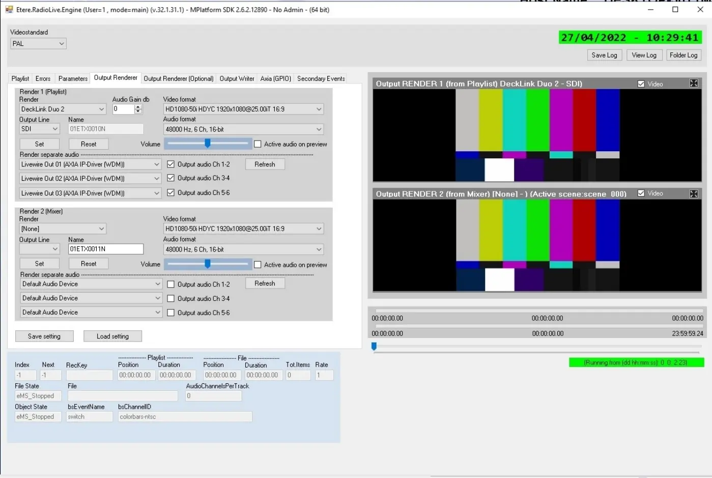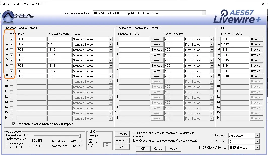 In the following images you can see how Etere was configured with an Axia Liveware system: