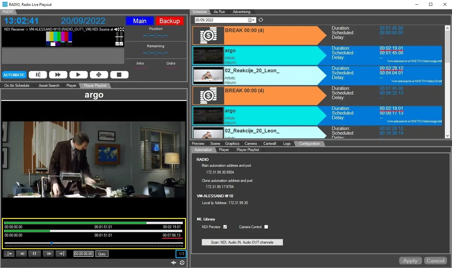 - playlist files counter (blue square): This counter shows how many files there are in playlist and which one of them is currently in play. The files are counted according to their scheduling order.