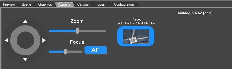 On Camera tab , the set camera preset can be controlled via trackpad and Zoom and Focus can be set on suitable values.