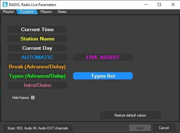 In this tab you can customize mostly the color of the Radio Live Director counters.