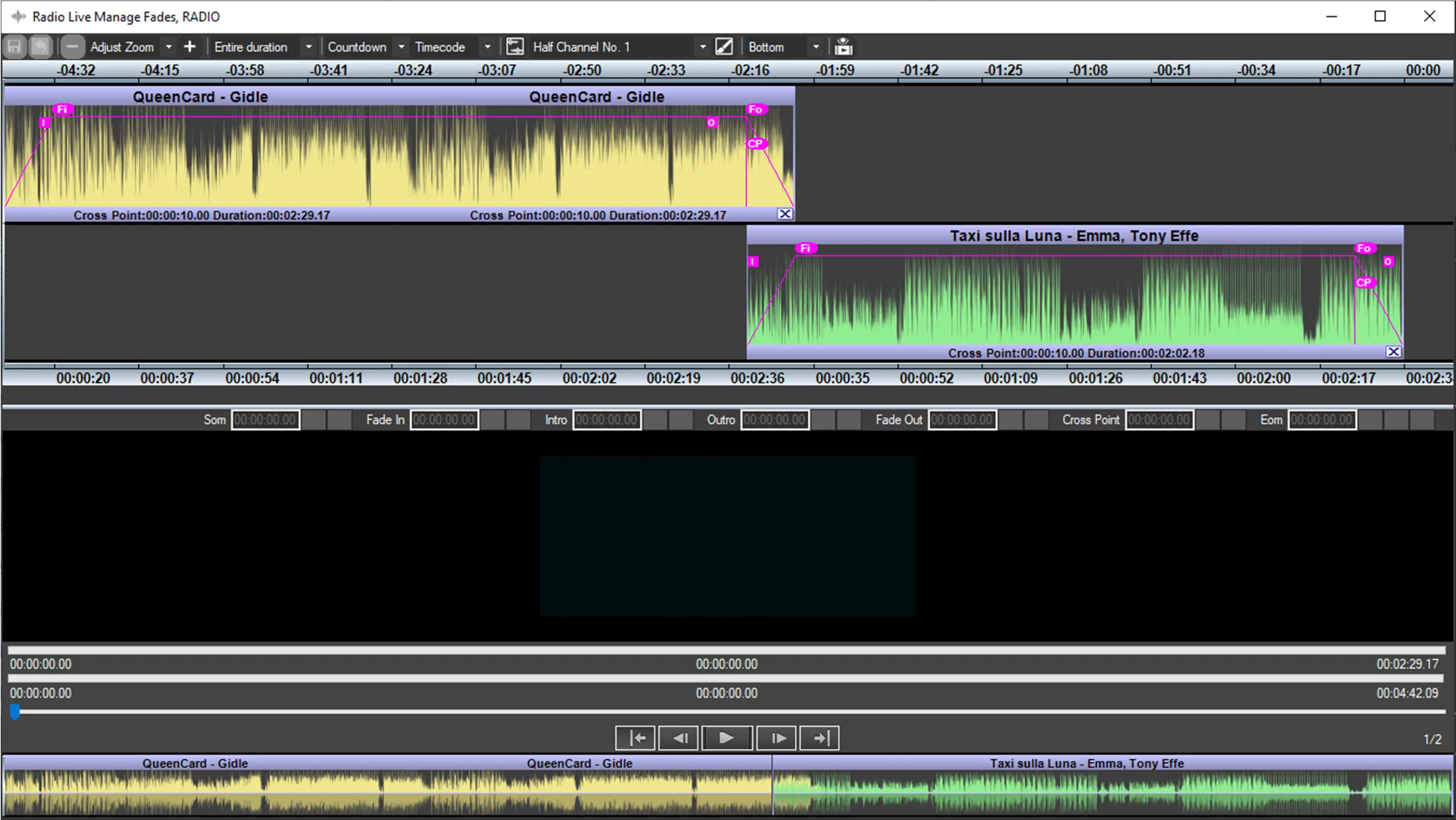 Radio Live Director allow to manage the transitions between audio files through the function Manage Fades.