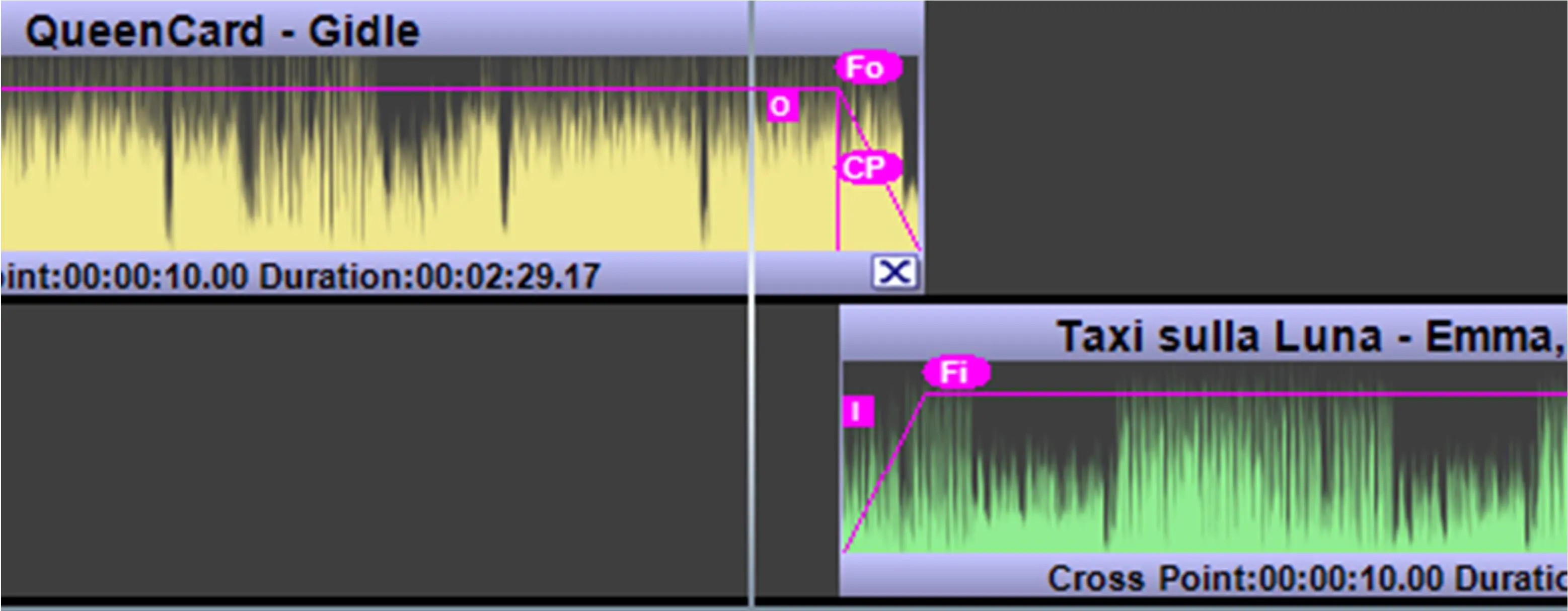 Fade Out (Fo icon): Set the start of the fade out