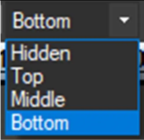 Timeline top and timeline bottom: This option allow to choose what to display at the top and the bottom of the timeline, or hide them. The toolbar contains 2 identical droplists: the one on the left controls the timeline top, the one on the right controls the timeline bottom.