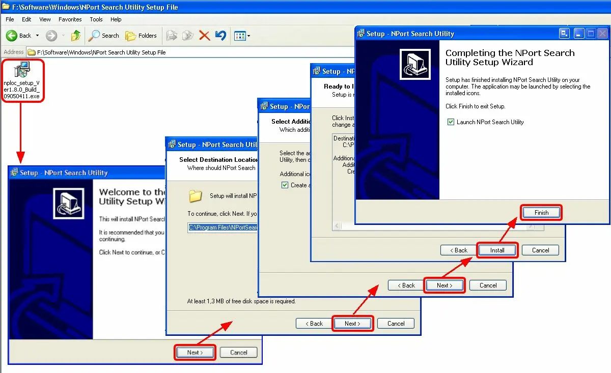 Set an IP address for the device 1. Install the NPort Search Utility¹ software and follow the installation wizard to complete the installation.