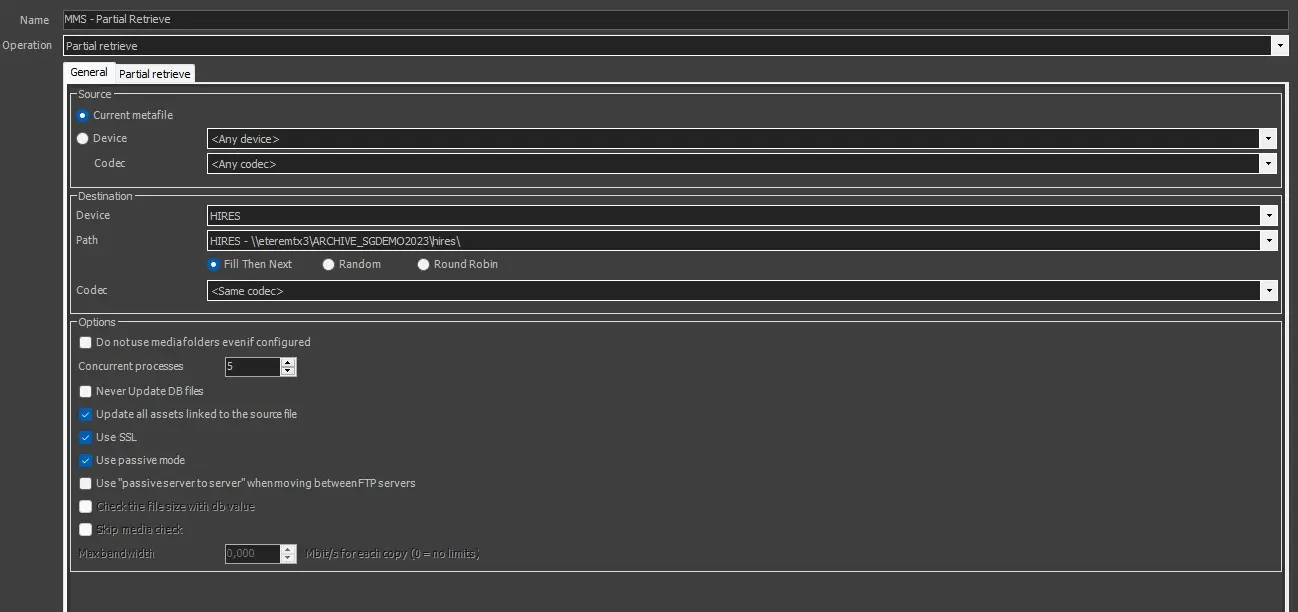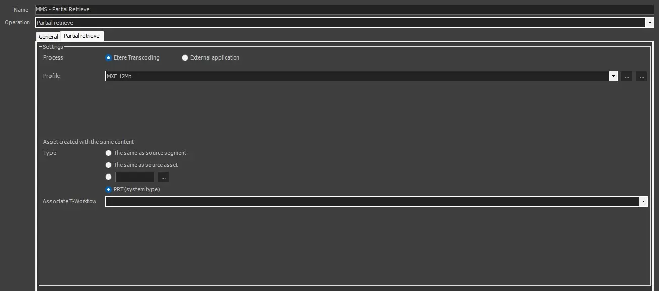 Operation: Select "Etere Partial Retrieve" option.