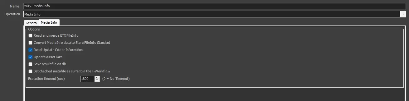 MMS - ETERE MEDIA INFO is the action used by ETERE system to perform the mediainfo action.
