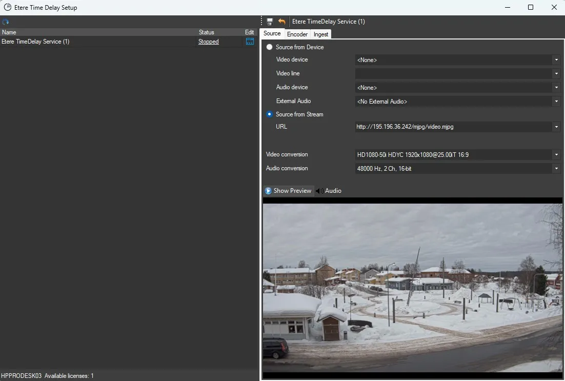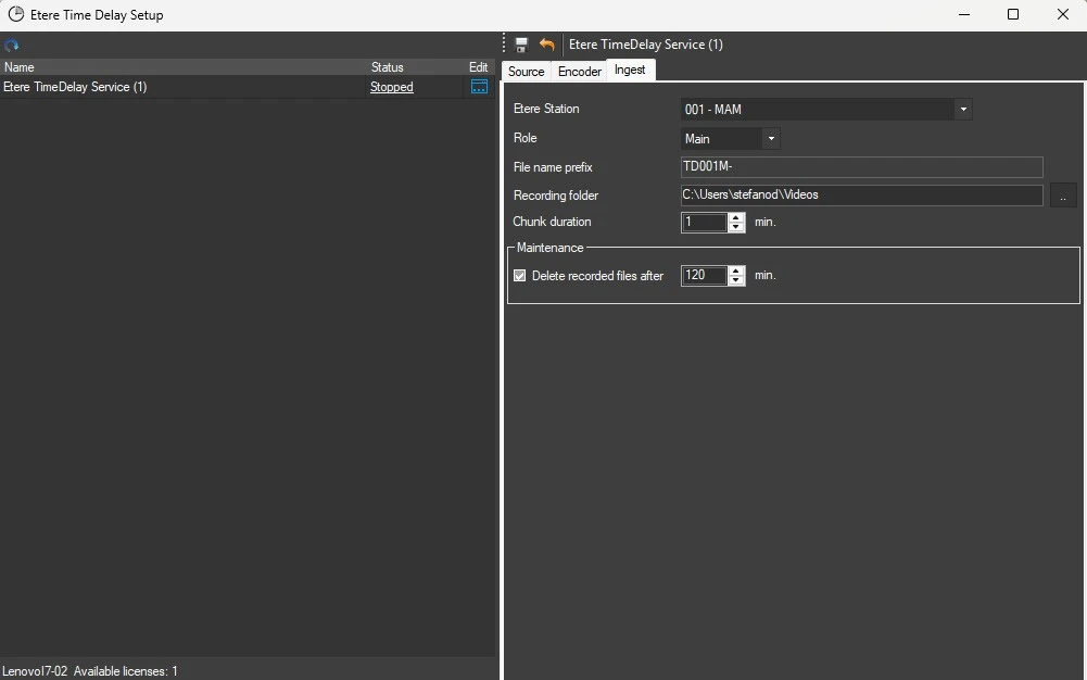 Etere TimeDelay Service needs one EA1236 license for each instance on each workstation.