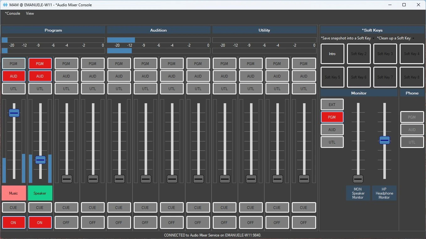 Etere Audio Mixer allows to route and mix audio signals on the audio channels of devices installed on a PC.