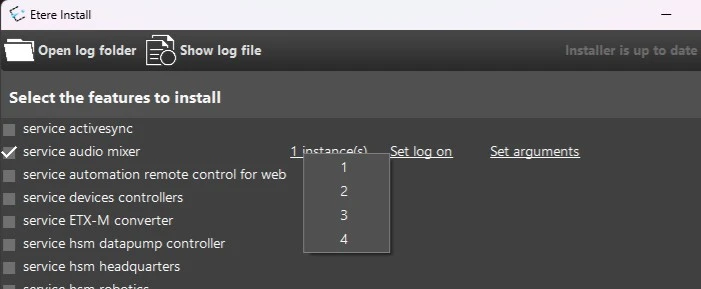 Along with the service, the Etere Audio Mixer Setup application is installed.