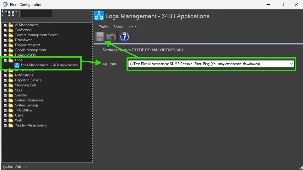 📘 Manual: Enabling Logs for 64-bit Applications in ETERE