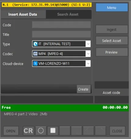 The Insert Asset Data function is used to create a new asset and assign its main technical and descriptive properties, including codec, asset type, and destination storage device.