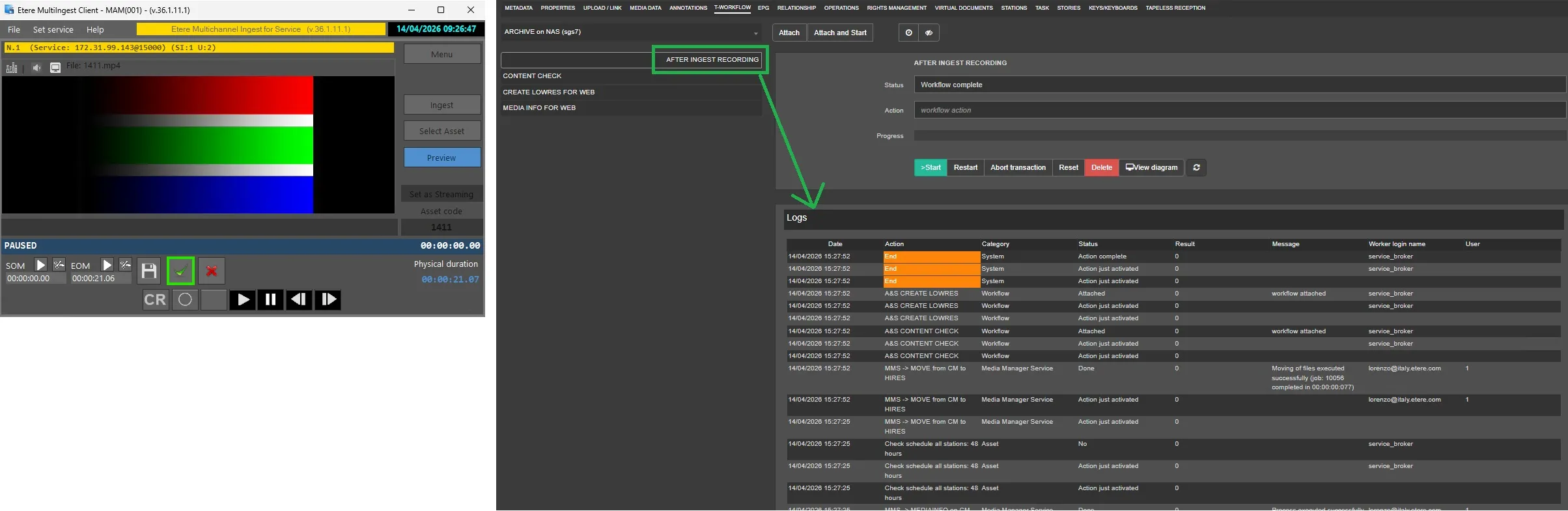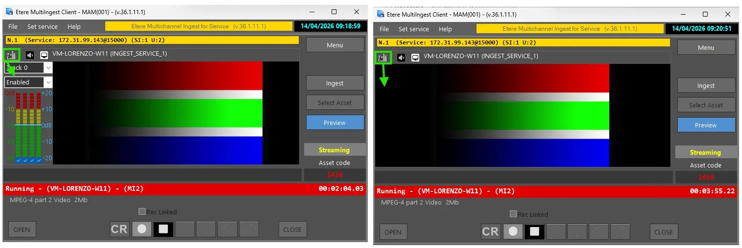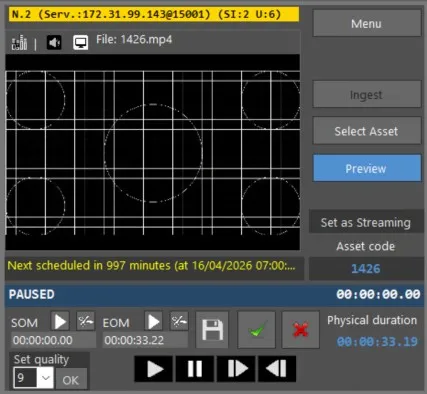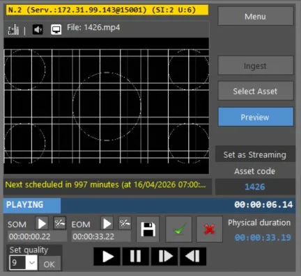 After recording, the file can be immediately previewed using the Multichannel Ingest UI tools, which allow basic editing and navigation.