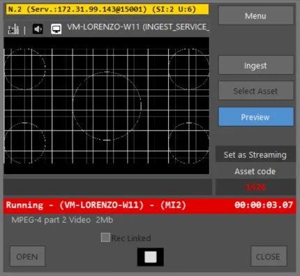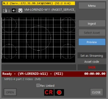 After configuring the input source, the ingest channel can be opened and monitored through the Preview interface.